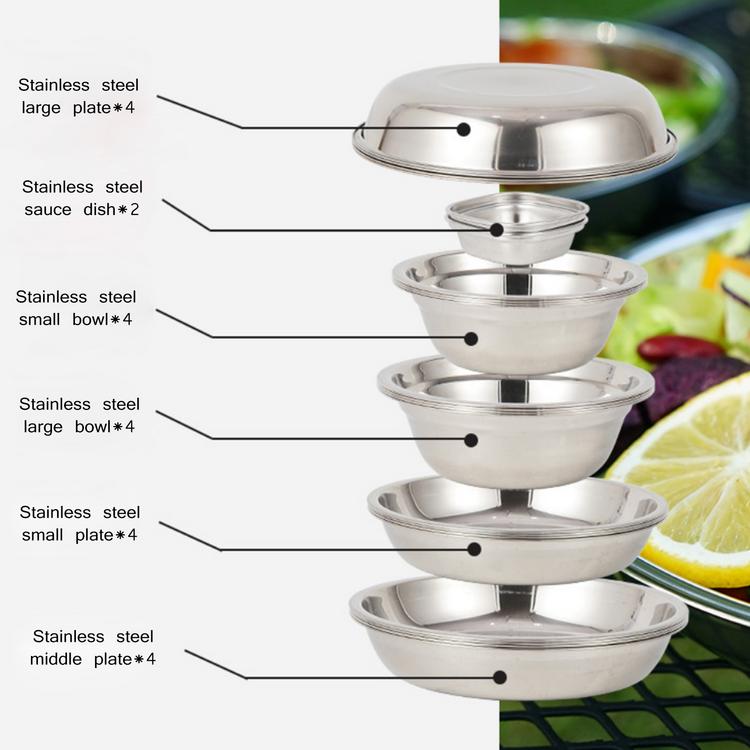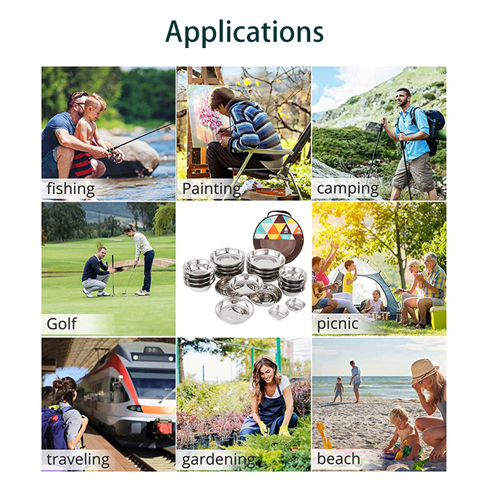KASSICO 304 Stainless Steel 22 Piece Camping Portable Dinner Plate Set |