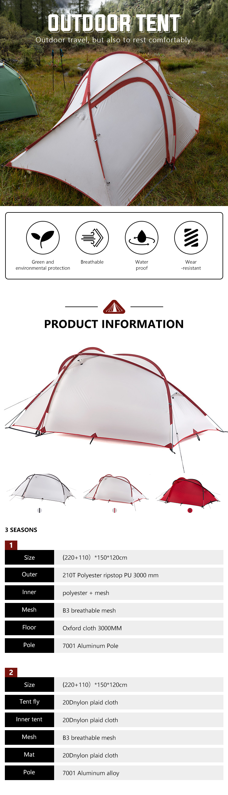 2 Rooms Waterproof Windproof Camping Tent for Hiking & Mountaineering