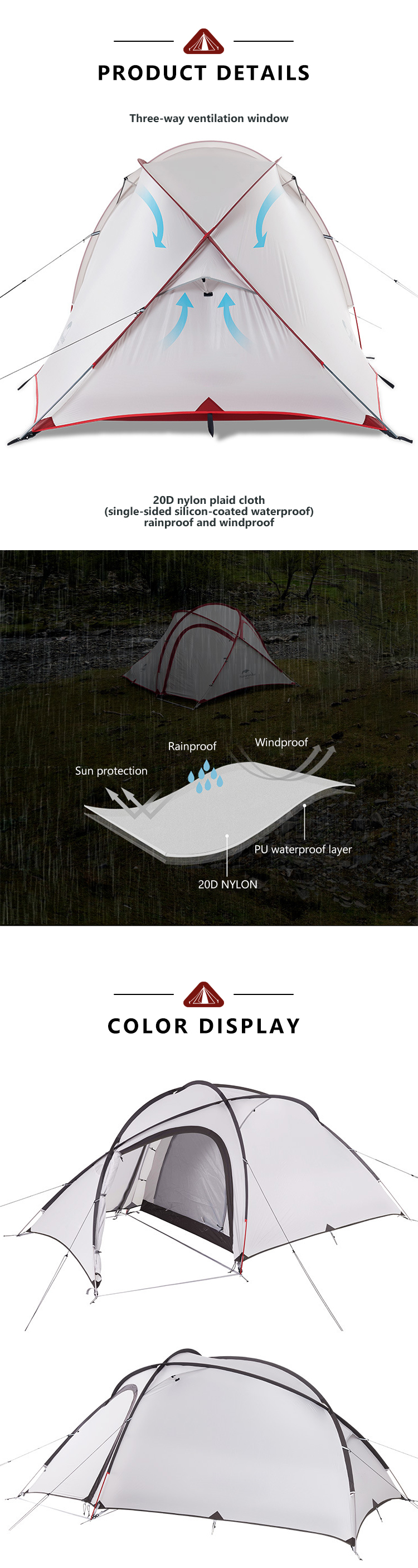 Excellent Ventilation: The flysheet features air windows on both sides and at the tail, promoting optimal air circulation inside and outside the tent. The triple-door design ensures privacy while providing good ventilation and protection from wind and rain.