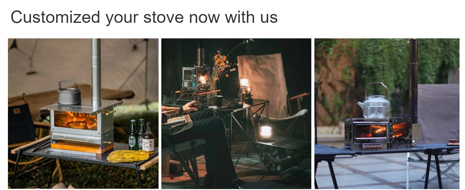 Foldable SS Wood Burning Tent Stove with 3 Glasses View