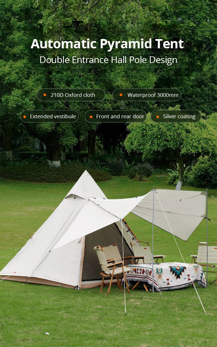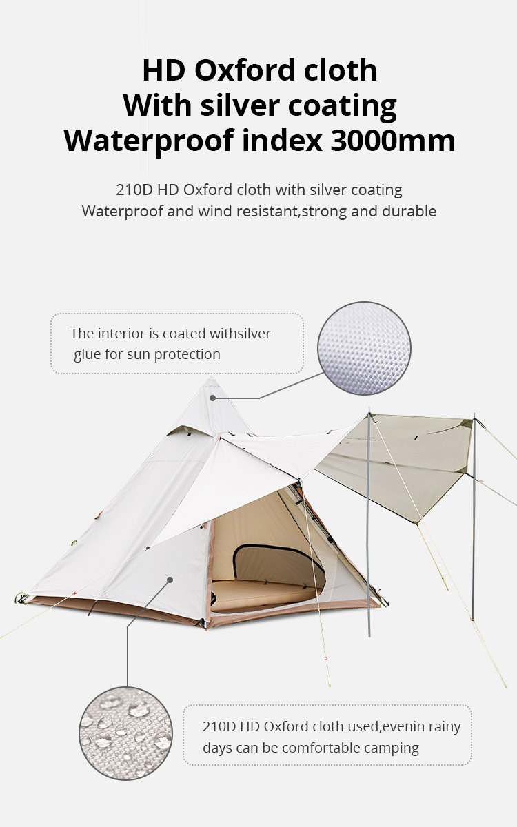 MAXIMUM CAPACITY: With a dimension of 240*240*210cm, It accommodates 3-4 adults standing upright in the tent without bumping the roof. The teepee shape provides generous height allows you to go in and out without feeling restricted.