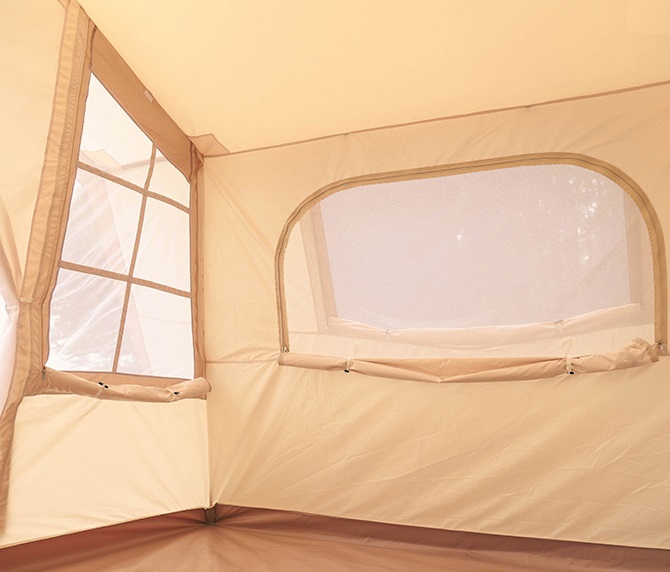 【Durable and High Quality Material】Our outdoor tent is made of waterproof high-density oxford/cotton cloth, which can keep you completely dry in the rain, is weatherproof and high temperature resistant, designed with a large area window screen and awning