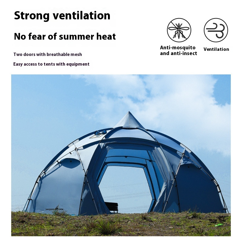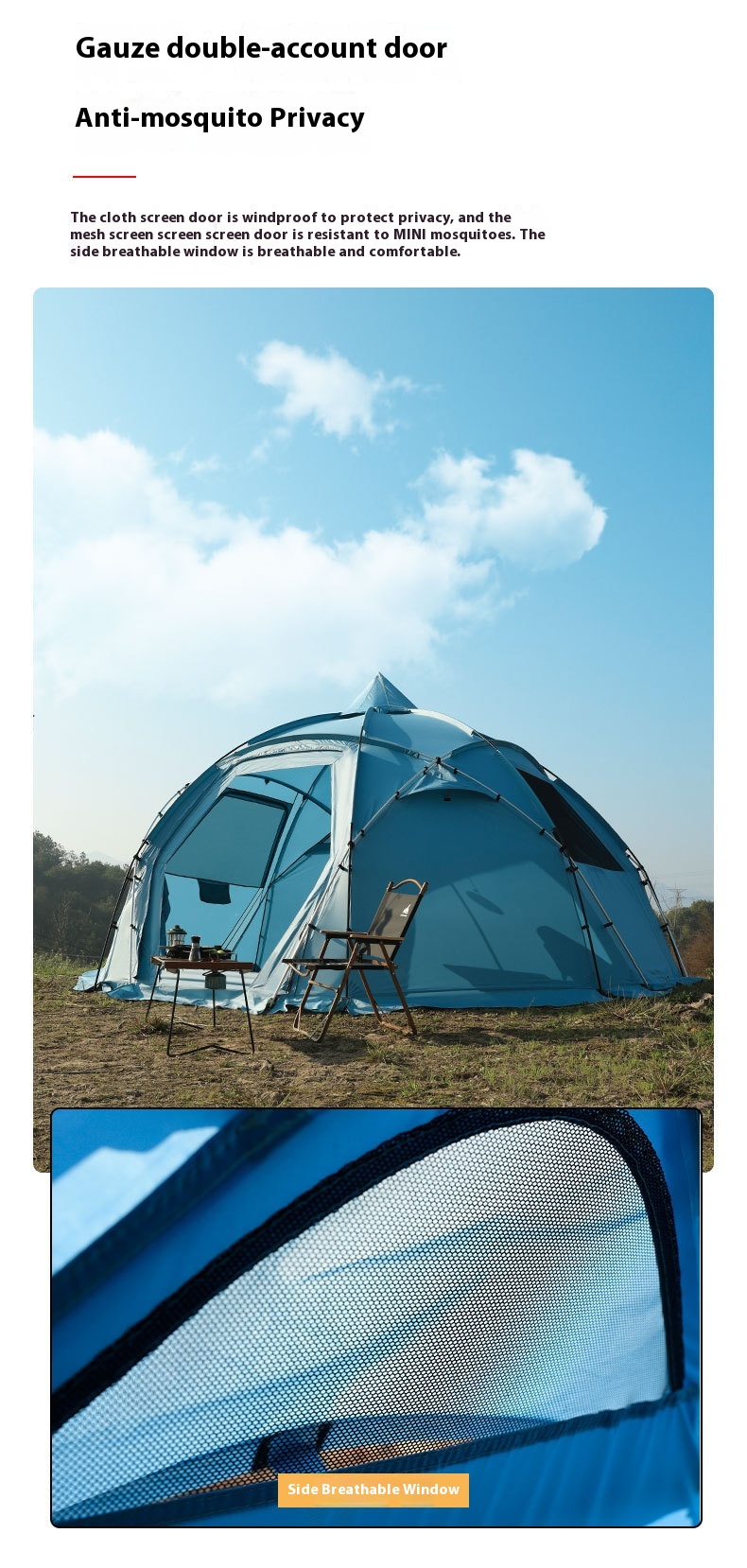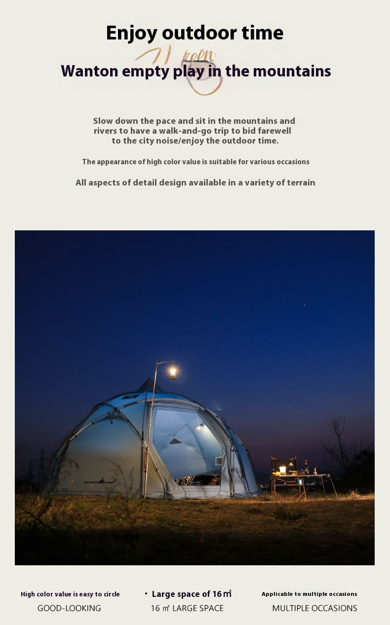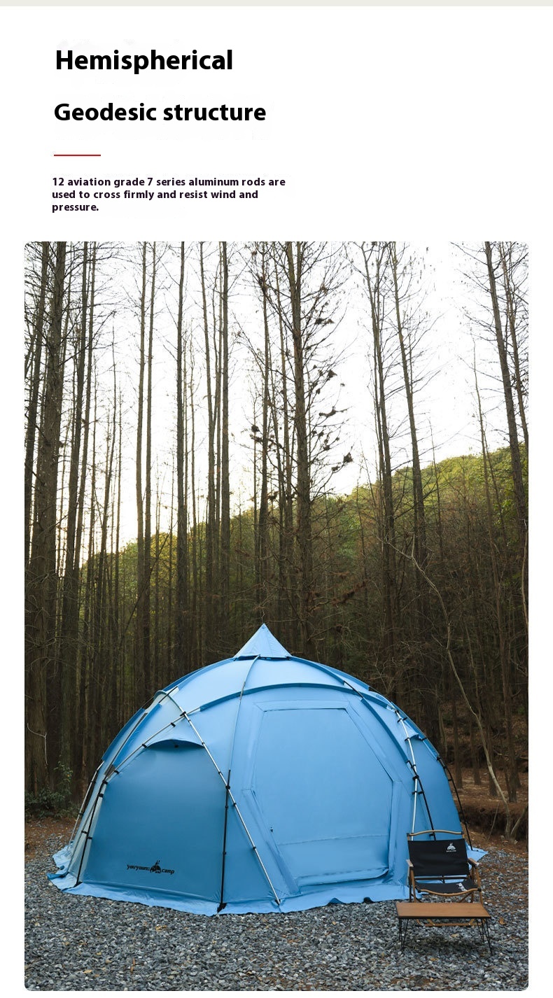 【Strong and Stable】 Built with a robust dome structure featuring a symmetrical point-and-line design, this tent offers exceptional stability, capable of withstanding extreme weather conditions and heavy snow.