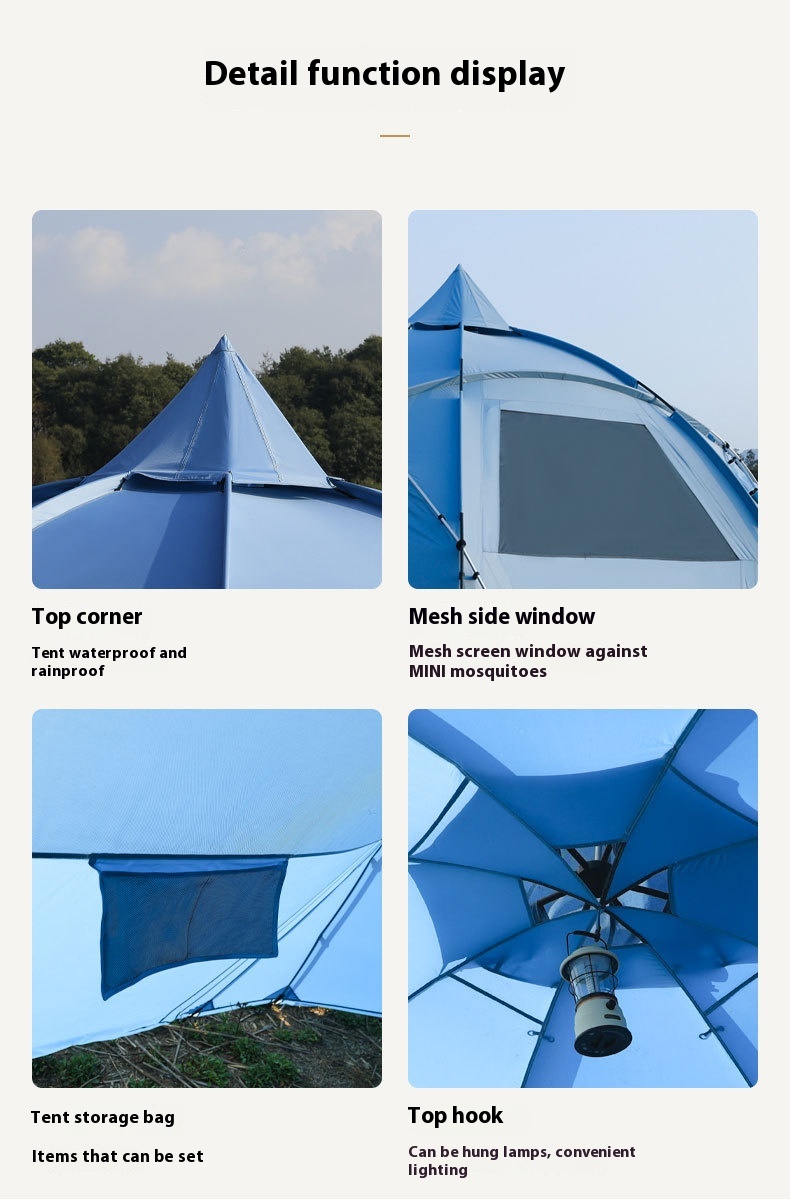 【Outer Tent Fabric】 The camping tent is made from durable 210D or 420D Oxford fabric, designed to withstand harsh outdoor conditions. Whether facing heavy rain or intense sun, this tent ensures reliable protection, letting you enjoy your outdoor adventures with confidence.