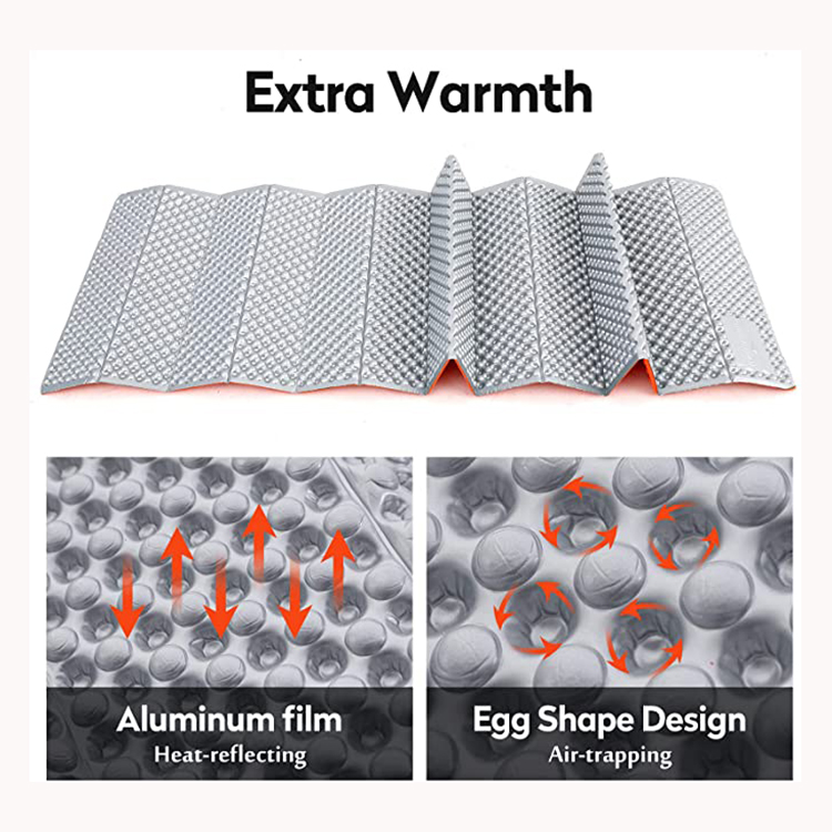 3.Space saving and portable design :Outdoor Folding Mat When unfolded about size 60*13*15cm.The whole seat cushion weighs only about 0.258kg Egg slot design, Peaks and valleys work together to reinforce support capacity and trap nest one to another inside to save space when packed. It weighs 50% less than a traditional picnic mat.