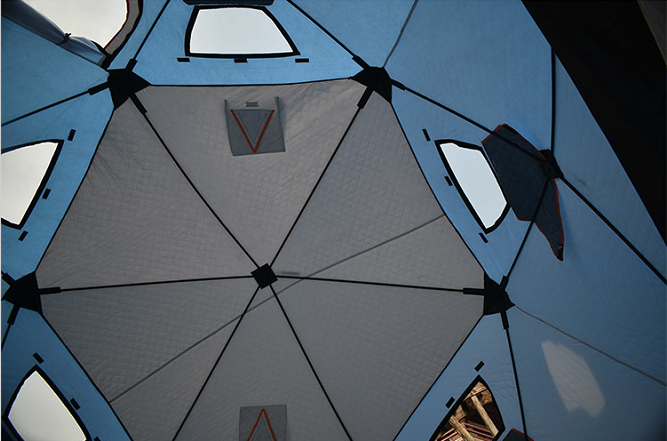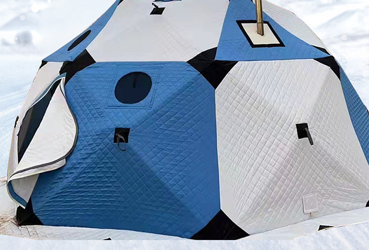 【Premium Fabric】Crafted from robust oxford fabric that envelops the entire structure, this tent ensures a waterproof experience. Its design, resistant to temperatures as low as -22°F, adds to your outdoor delight. The tent boasts four covered windows, all detachable for versatility.