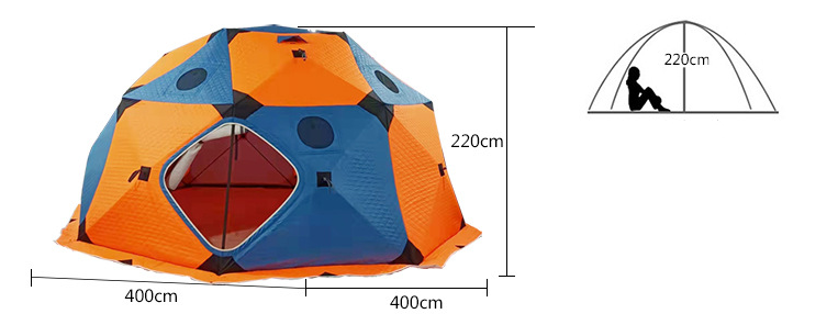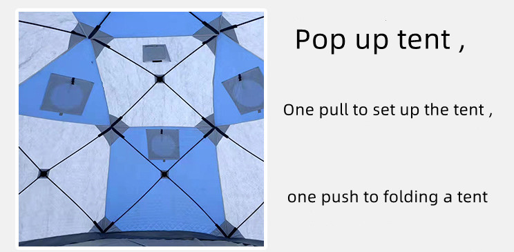 【Generous Space】Capable of comfortably accommodating 5-8 individuals, the tent features light-permitting windows that regulate air circulation. An excellent choice for couples or families, it doubles as a cozy ice shelter during outdoor fishing ventures.