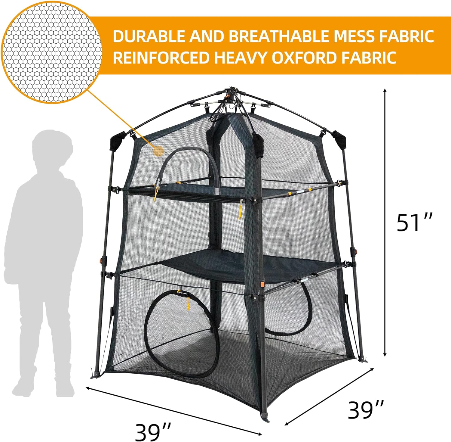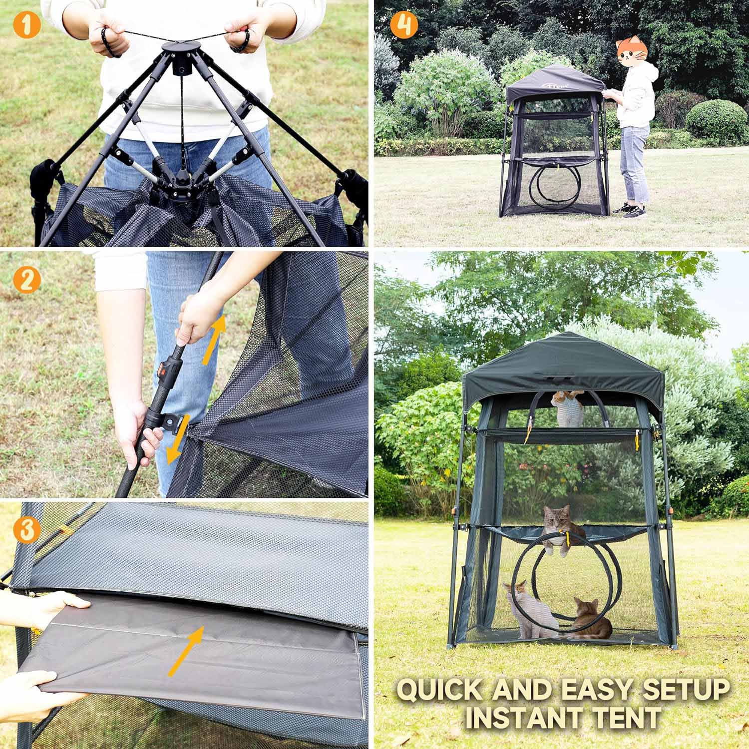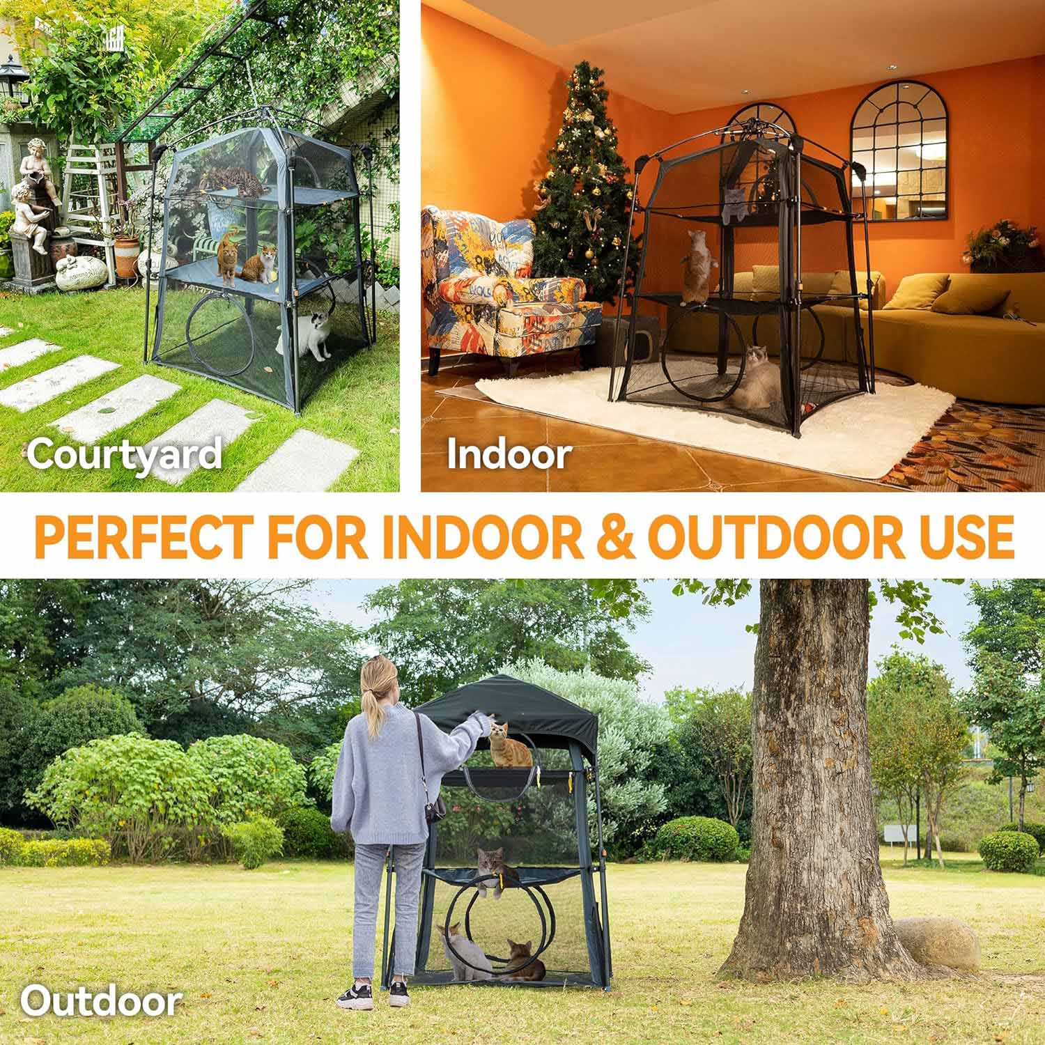 Crafted with high-quality mesh and featuring our latest upgraded design—including thicker poles and reinforced corners—this cat tent is stronger and more stable than many comparable models. Sturdy enough for both indoor and outdoor use.