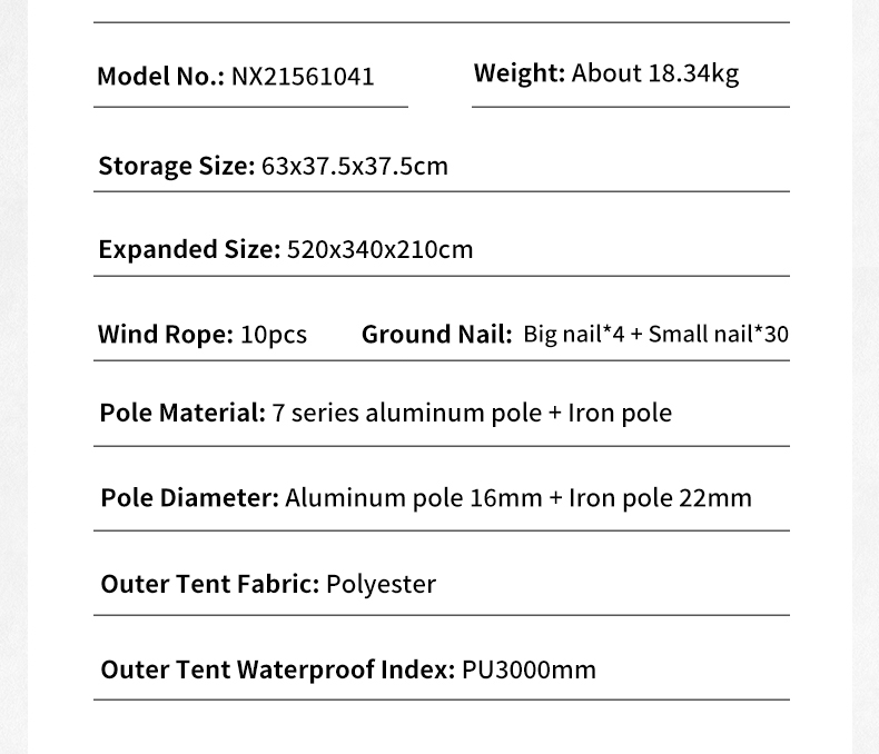 Ground nails 18pcs, wind ropes 6pcs