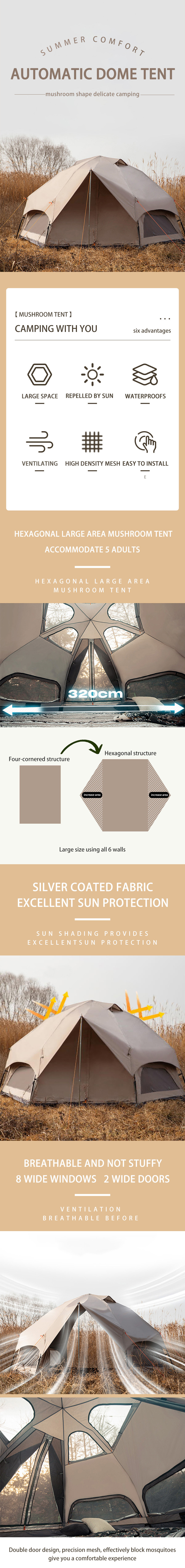 Luxury Large Space Mushroom Waterproof Outdoor Camping Tent
