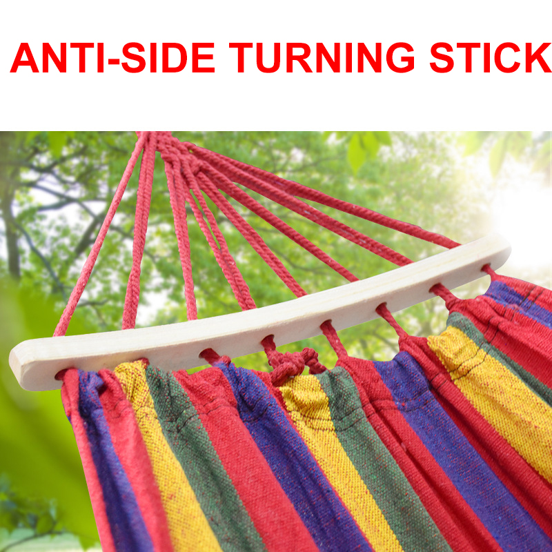 *High quality double hammock: Our camping hammock made of cotton canvas, with a load capacity of up to 200kg, enough to accommodate two adults. Hammock display size: 190*80 CM. The hammock can be used for hammock frames or hammock trees with a length of 8.5-10 feet.
