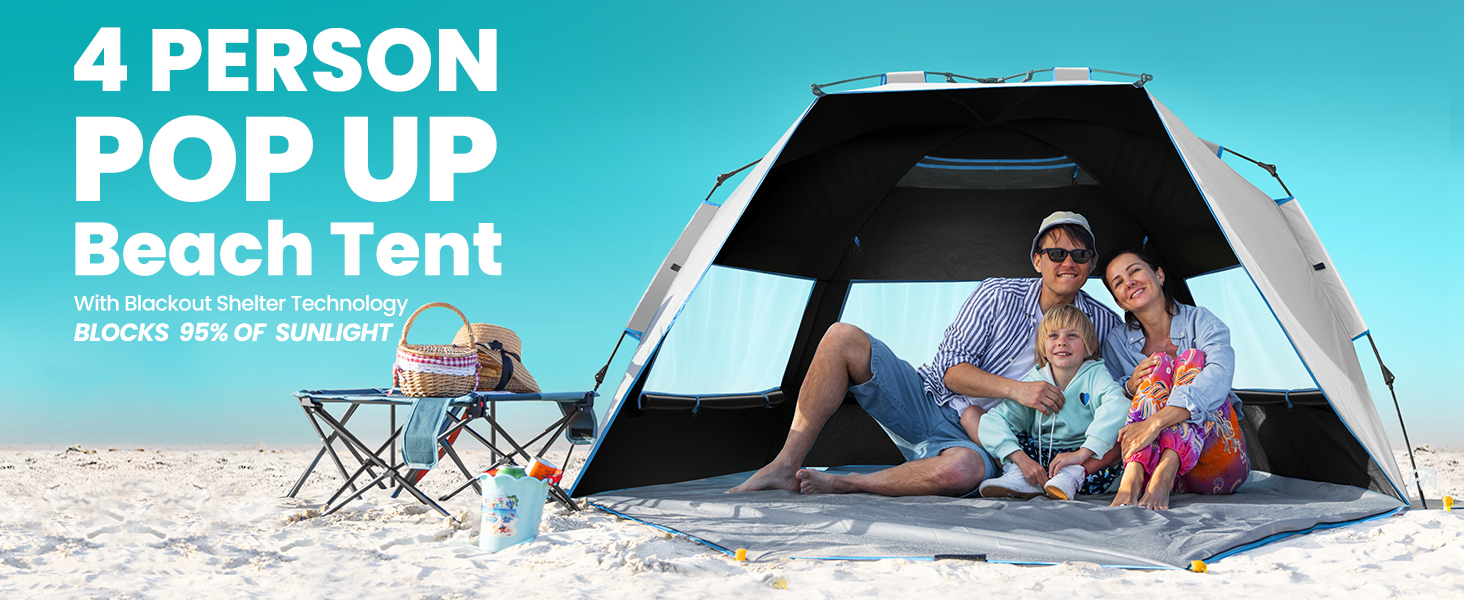 Spacious Interior for 4 People: With dimensions of 94 x 55.4 x 53 inches, this XL beach tent provides ample space for 2 adults and 2 children. Perfect for family car camping or campsite adventures.