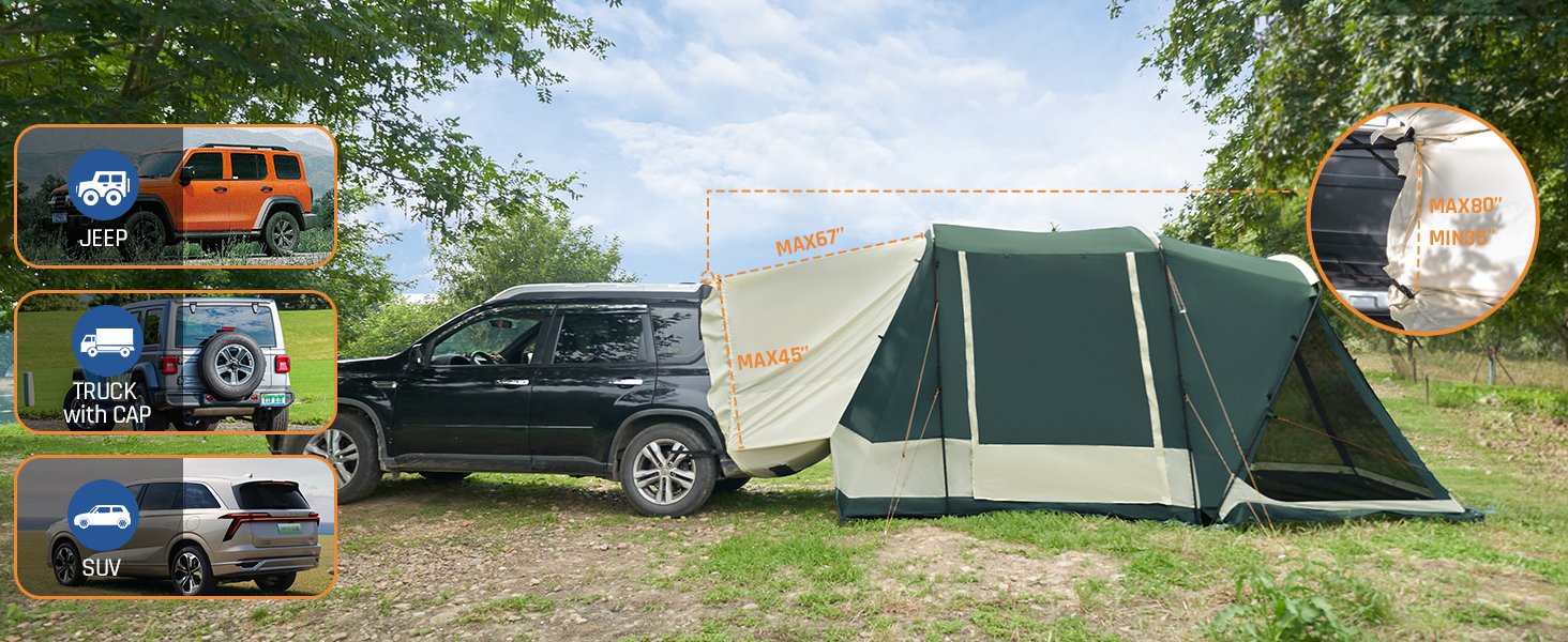 SUV-Attached Tent with Mesh Screen Porch