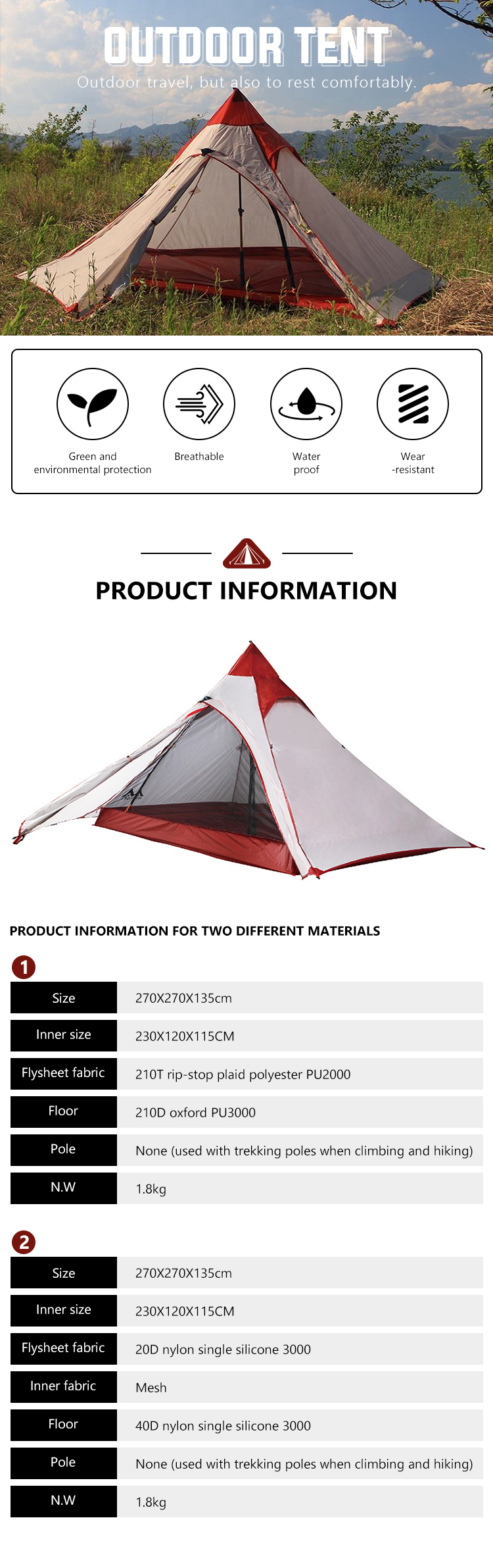1-2 Persons Ultralight Outdoor Mountaineering Tent Use Trekking Pole