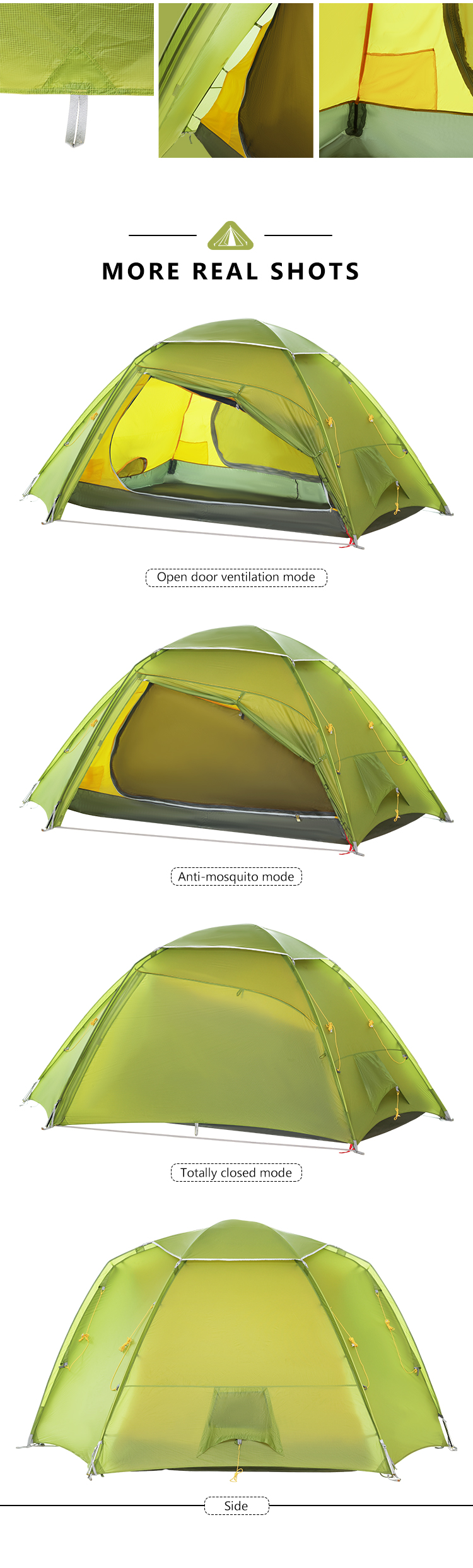 【Extreme Durabllity & Waterproof】20D Nylon coated silicon PU2000+ guarantees that despite its lightweight this tent can withstand the elements in all three seasons. When choosing a tent, pay special attention to the waterproof level!