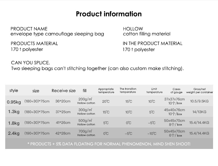 *Large sleeping bag: the super wide sleeping bag adopts a special cylindrical shape, which is longer and wider than the ordinary sleeping bag. The size is 220*85cm. This sleeping bag is very spacious, so you can zip it up and put it in the sleeping bag, just like the bed at home! This Adult sleeping bag is ideal for outdoor activities in autumn, spring, summer and winter. *Warm and comfortable: this sleeping bag provides excellent warmth and comfort. Our camping sleeping bag adopts a Wavy design, which can better fix the cotton and lock every inch of the warm sleeping bag to enhance the warmth of the bottom. Suitable for outdoor activities in autumn, summer, spring and winter. *Four seasons warm: our light sleeping bags can be used in all seasons (spring, summer, autumn and winter). When you are at - 0-12 degrees Fahrenheit (about - 14 degrees Celsius), you will feel warm and comfortable. This 20 degree sleeping bag can keep you warm and comfortable in cold weather and have a nice night! *Detailed design: our ultra light sleeping bag is suitable for backpacks. It has a semicircular hood and an adjustable pull cord to keep your head warm. Double sided zipper at the bottom for quick ventilation and easy zipper from outside or inside. This outdoor sleeping bag can also be folded into quilt or sleeping mat according to your preference. *Light weight and easy to carry: this sleeping bag is very compact and easy to carry. Our adult hot sleeping bags are ideal for cold weather, hiking, backpacking, camping and other outdoor activities. This camping sleeping bag is suitable for adults and teenagers. Our backpack hiking sleeping bag is designed to ensure you have a quiet night after a day of outdoor travel!