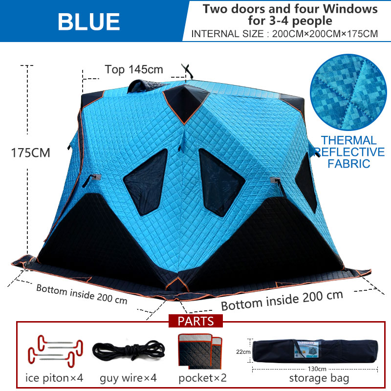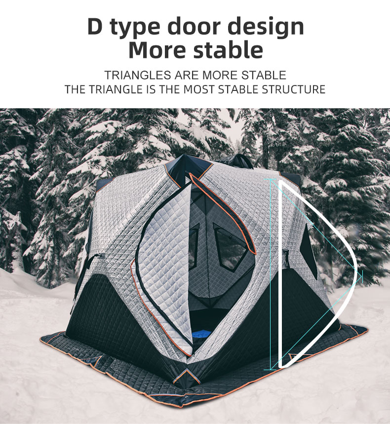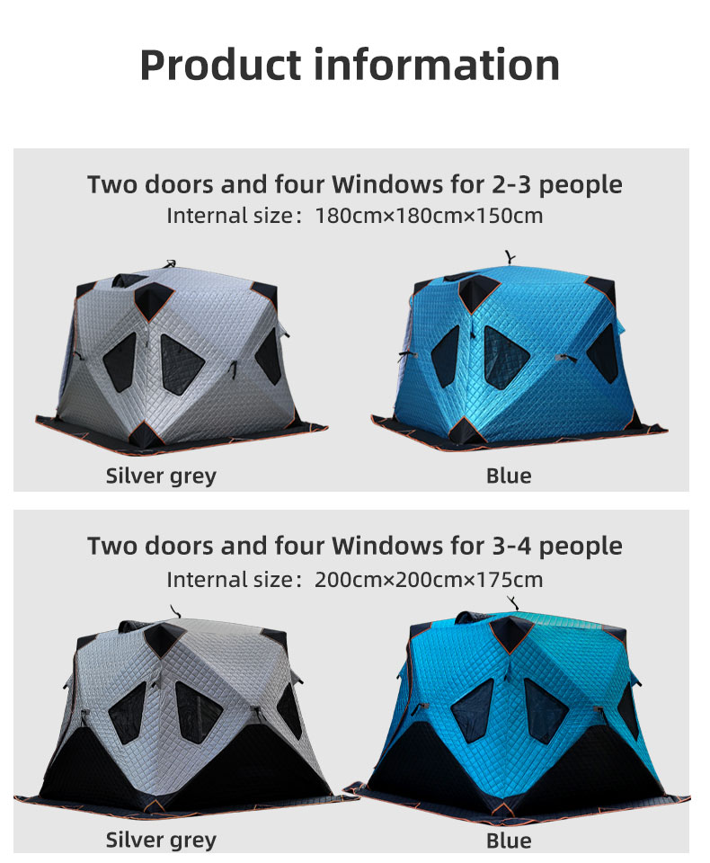 Ample Space: Accommodating 5-8 people comfortably, the tent incorporates windows that allow light while keeping the air circulation controlled. Perfect for couples or families, it serves as a cozy ice shelter during fishing trips.