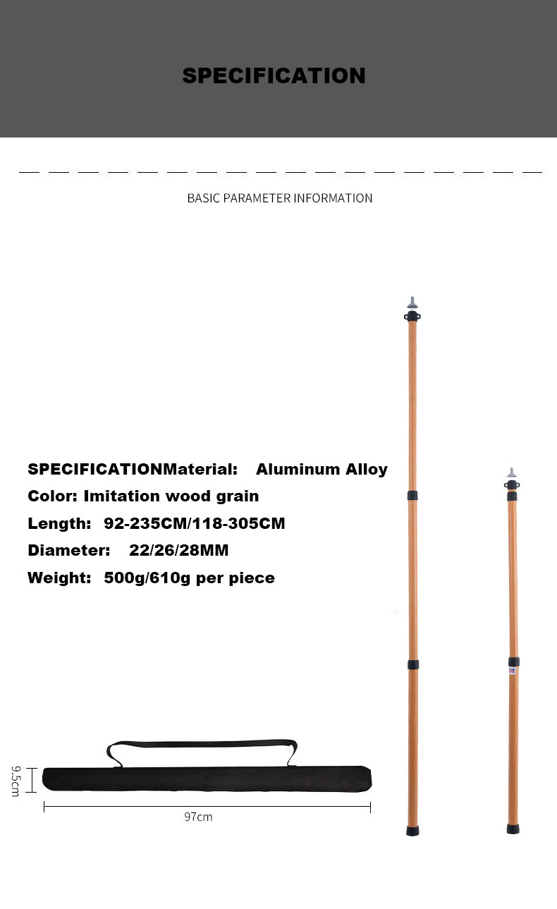 Outdoor Adjustable Durable Aluminum Pole For Camping Tent